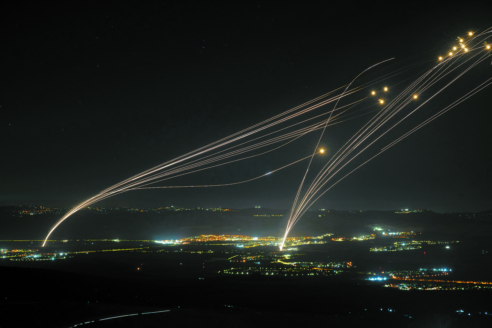 下图 8月4日,以色列“铁穹”防空系统拦截射向以色列北部加利利地区的火箭弹。 新华社/美联