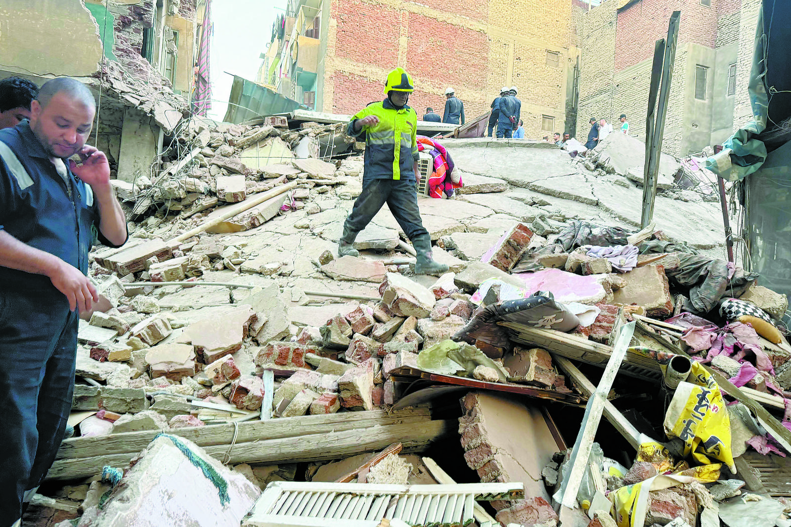 3日,救援人员在埃及开罗的建筑物倒塌现场救援。新华社发(艾哈迈德·戈马摄)
